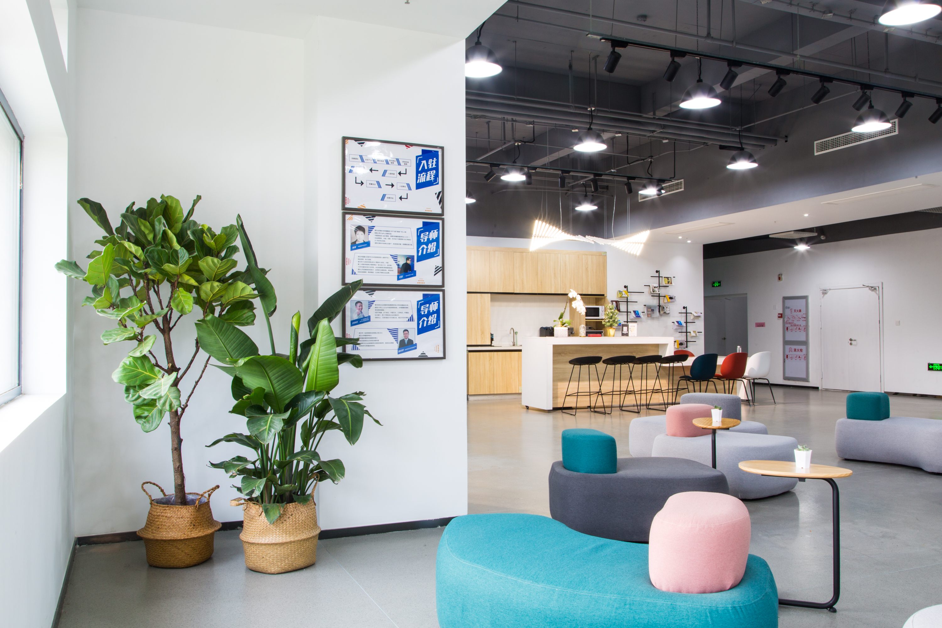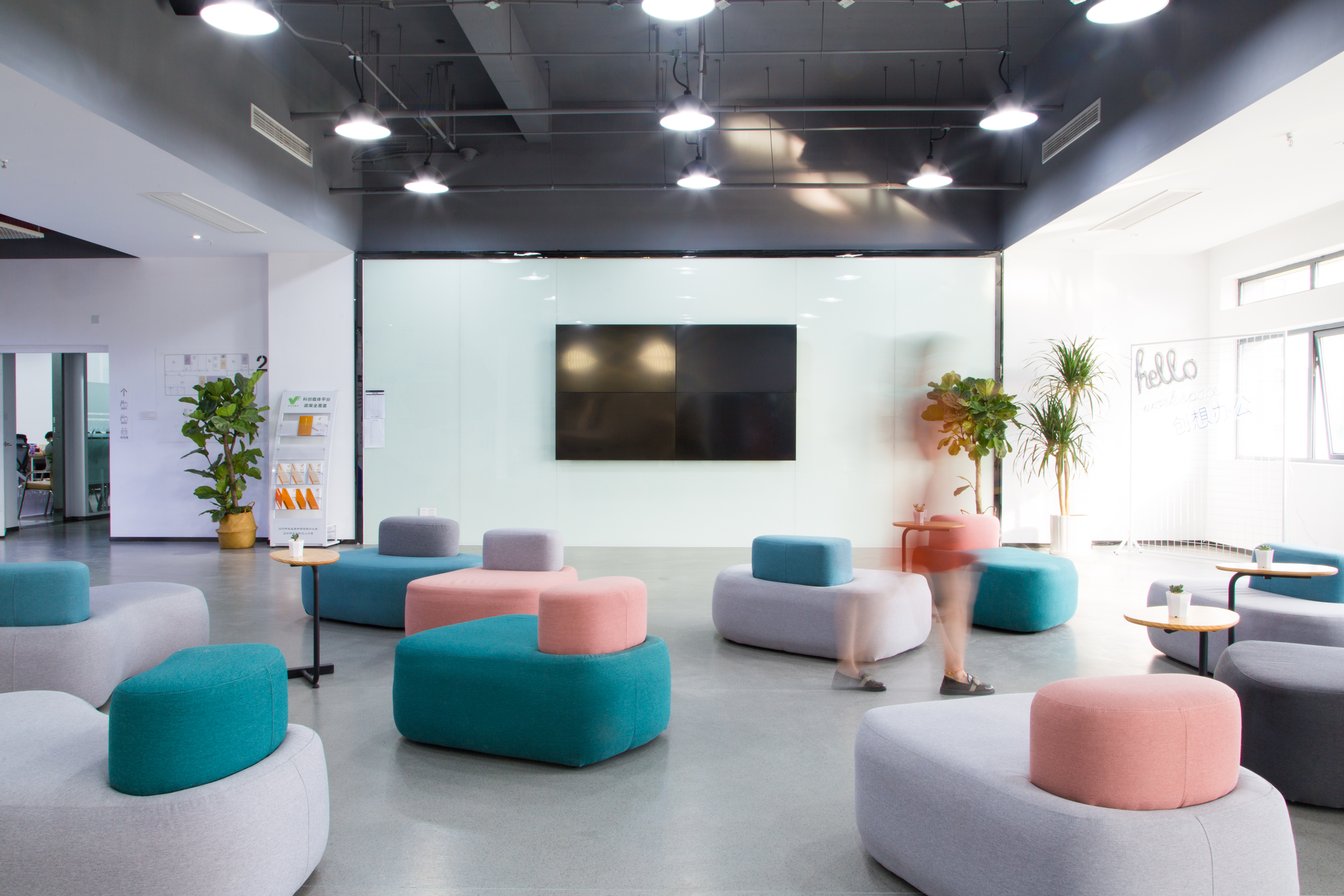 「创想G128科技园」在设计之初,以着以人为本的设计理念,将用户体验融入到了设计当中,努力打造成为更加适合90后甚至是00后的“年轻化”办公空间,利用更多的共享空间与共享设备去展示“人性化”的设计。在空间上配有大堂、水吧台、读书角、会议室等超多共享空间!